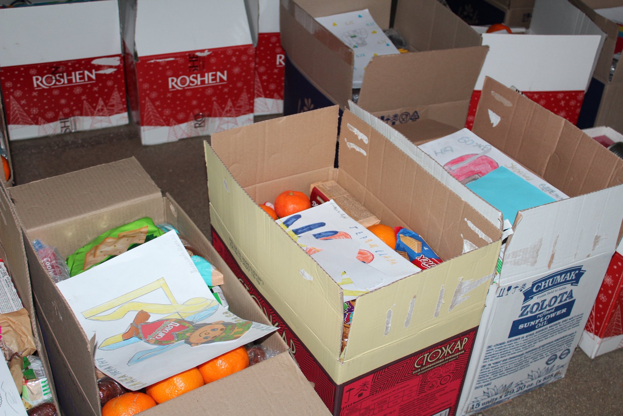 Для наших Захисників ми підготували копчену ковбасу, сало, солодощі, чай, каву, теплі носки, необхідні речі та дитячі малюнки.